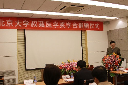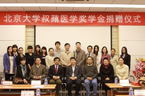 11月7日,北京大学叔蘋医学奖学金捐赠仪式在医学部国际合作处会议室举行。